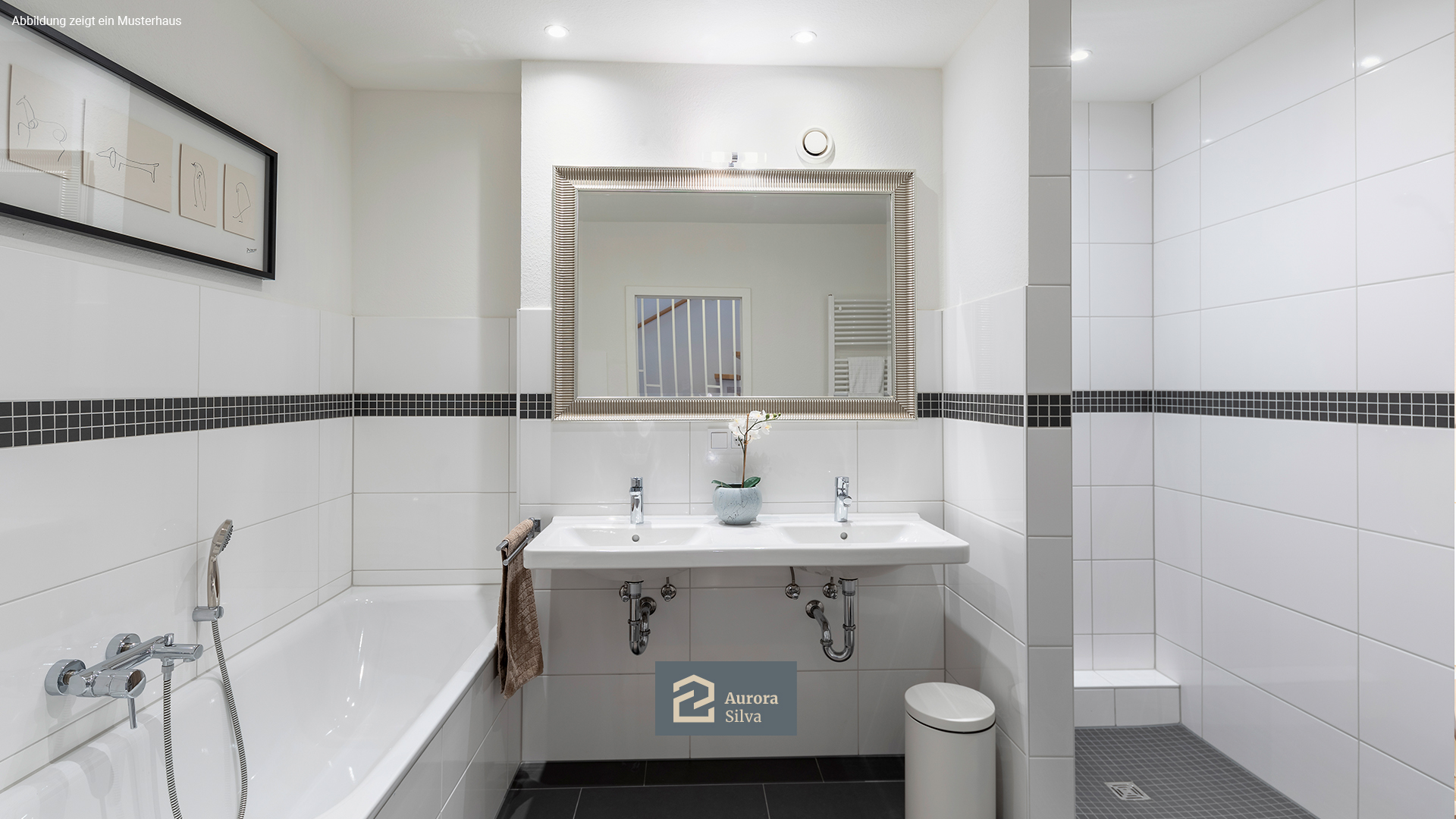 Im Obergeschoss beginnt der private Teil des Hauses. Hier geht es um Ruhe, Erholung und den eigenen Rhythmus. Das Hauptbad ist klar gestaltet und bietet genug Raum für einen entspannten Start in den Tag oder ein warmes Bad am Abend.