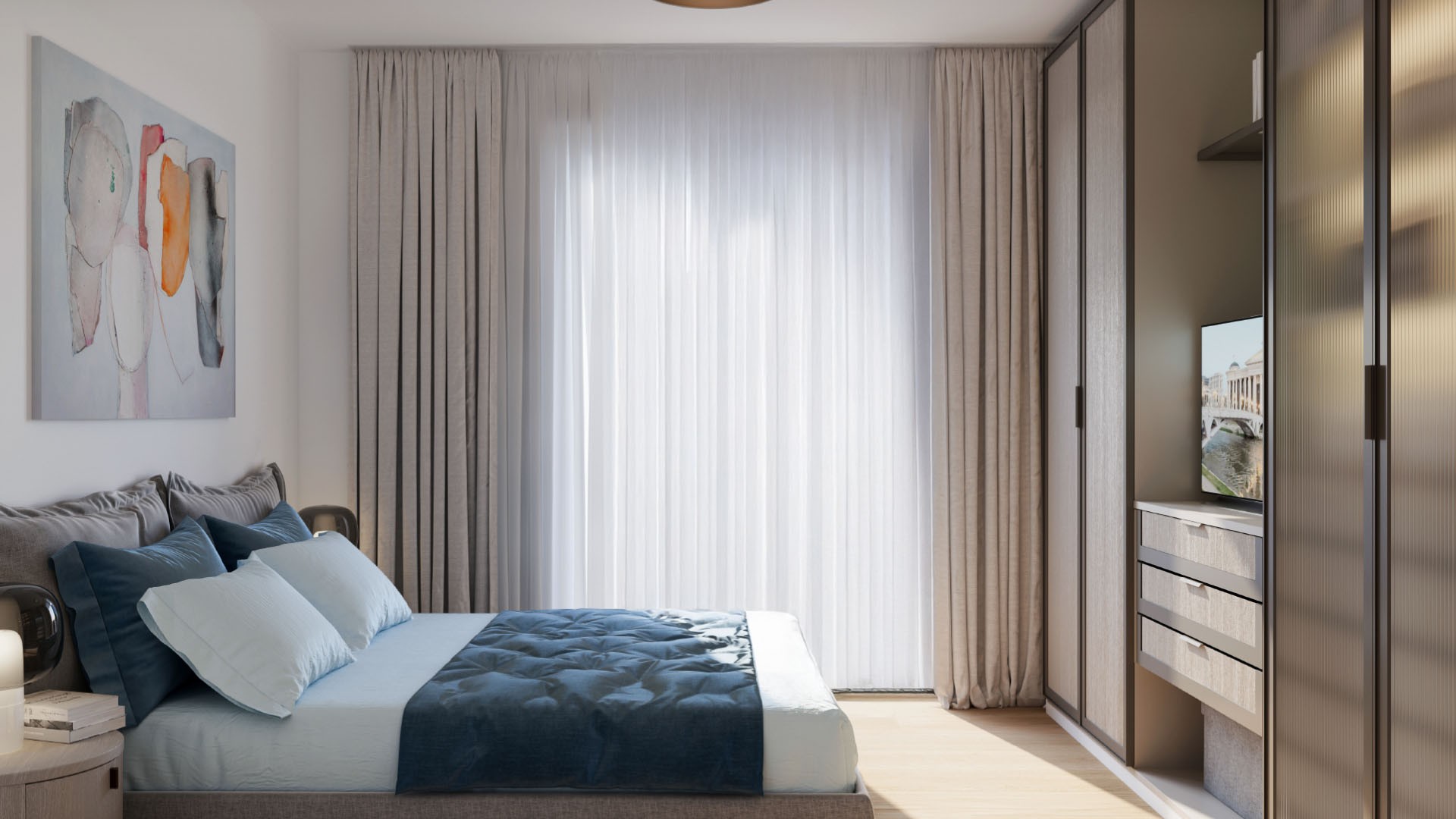 Die Ausstattung der Wohnungen ist auf Komfort, Qualität und Alltagstauglichkeit ausgelegt. Fußbodenheizung in allen Wohnräumen sorgt für ein angenehmes Raumklima. Dreifach verglaste Fenster und elektrisch betriebene Rollläden bieten Ruhe, Energieeffizienz und zusätzlichen Wohnkomfort. Hochwertige Bodenbeläge, moderne Bäder mit Marken-Sanitärobjekten sowie sorgfältig ausgewählte Materialien schaffen ein stimmiges Gesamtbild. Balkone, Terrassen und Dachterrassen erweitern den Wohnraum nach draußen. Ein Aufzug verbindet alle Etagen komfortabel mit der Tiefgarage. Die Wärmeversorgung erfolgt über Fernwärme, ergänzt durch eine Photovoltaikanlage im Mieterstrommodell. Eine vorbereitete Ladeinfrastruktur für Elektromobilität in der Tiefgarage rundet das nachhaltige Wohnkonzept ab.