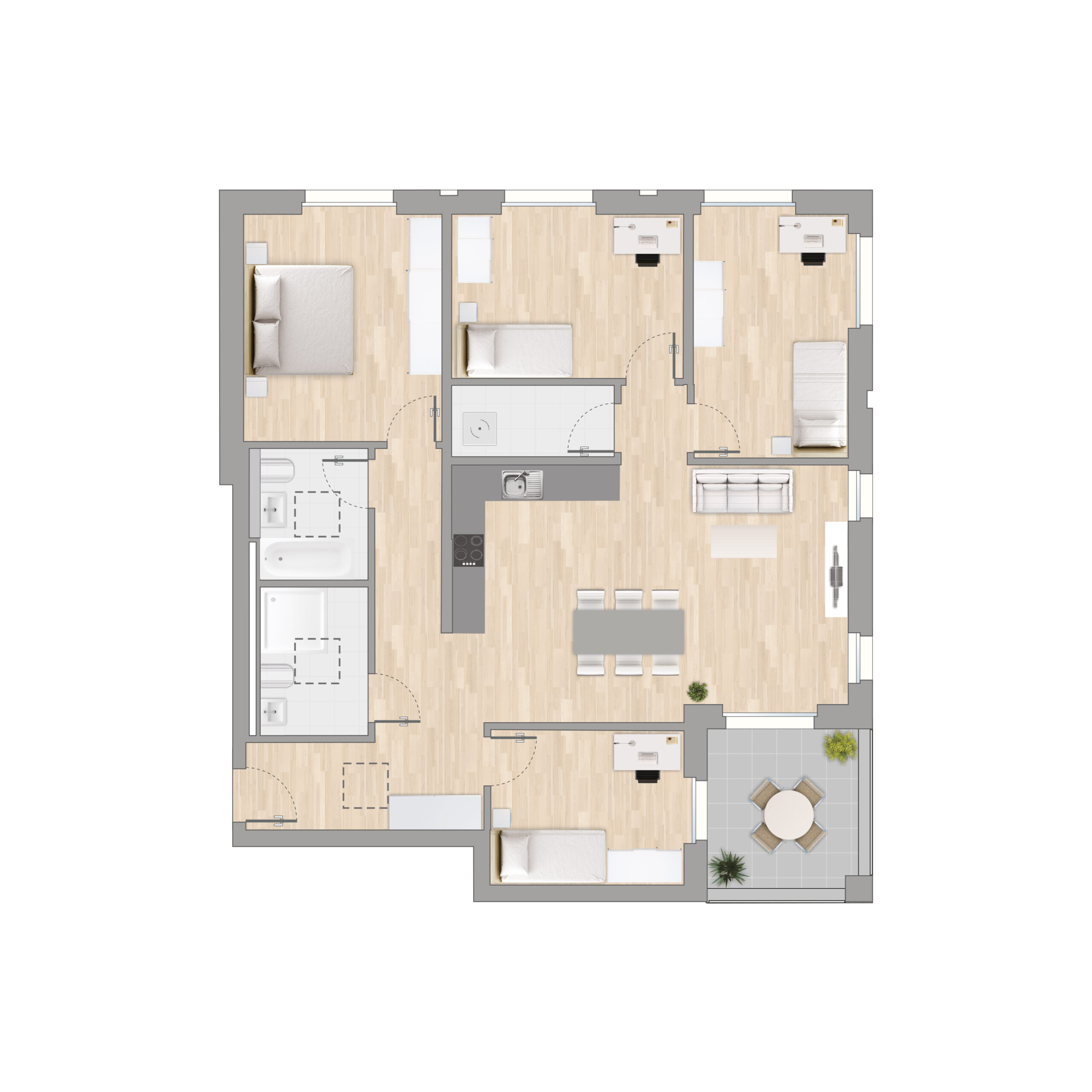Angebotsmix aus 2- bis 5-Zimmer-Wohnungen (von ca. 62 m² bis ca. 117 m² Wohnfläche)