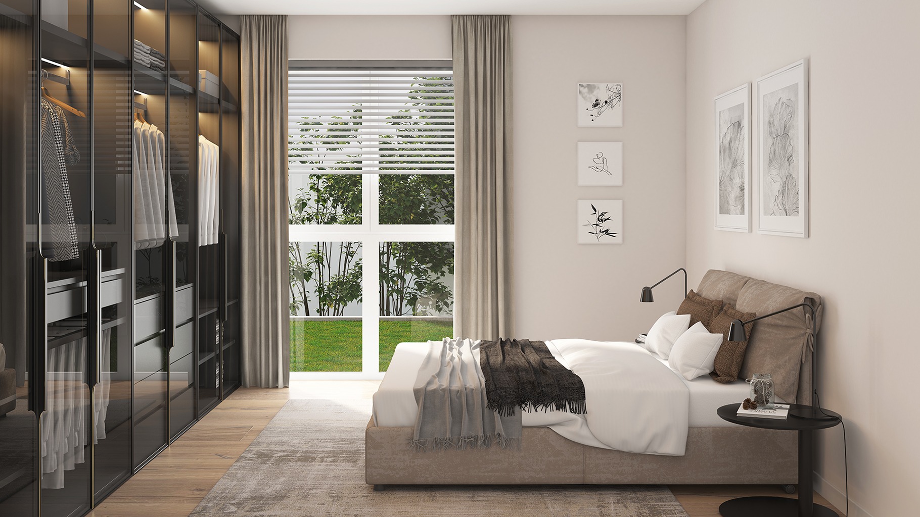 Hochwertig, modern und komfortabel – diese Ausstattung lässt keine Wünsche offen. In allen Wohnräumen finden Sie edles Parkett, das für eine angenehme und behagliche Wohnatmosphäre sorgt. Die Fußbodenheizung, individuell in jedem Raum regulierbar, garantiert wohlige Wärme an kalten Tagen. Bodentiefe Fenster mit Dreifachverglasung lassen Licht in Ihre Wohnung strömen und isolieren perfekt gegen Kälte und Lärm.